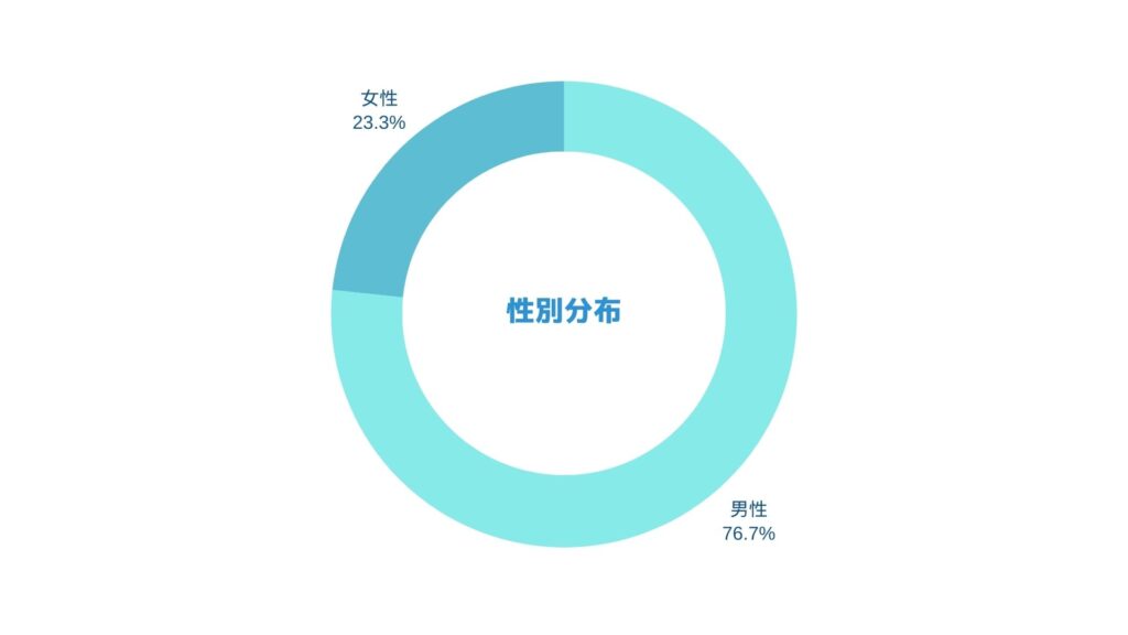 まずは前回同様に、年齢と性別から見てみます。30代・40代がもっとも多く83.4%となっており、男性が4分の3とトレンドは大きく変化ありません。