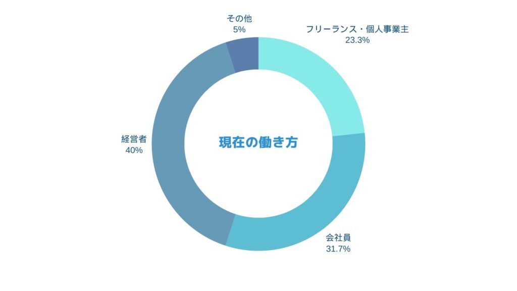 現在の働き方については少し変化があり、会社員の方が31.7%と3割を超えてきました(前回は2割弱でした)。私自身の実感としても、最近は会社員としてお勤めの方が、副業での参画を希望されて登録するケースが多くなってきた印象です。大手人材事業者の調査結果を見ても、副業を認める企業の割合は年々増えていますので、そうした時代背景を受けて今後も会社員の方からの登録が増えてくるように思います。