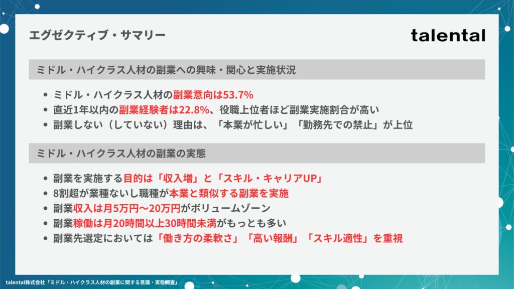 【PDF】ミドル・ハイクラス人材の副業に関する意識・実態調査(talental株式会社)