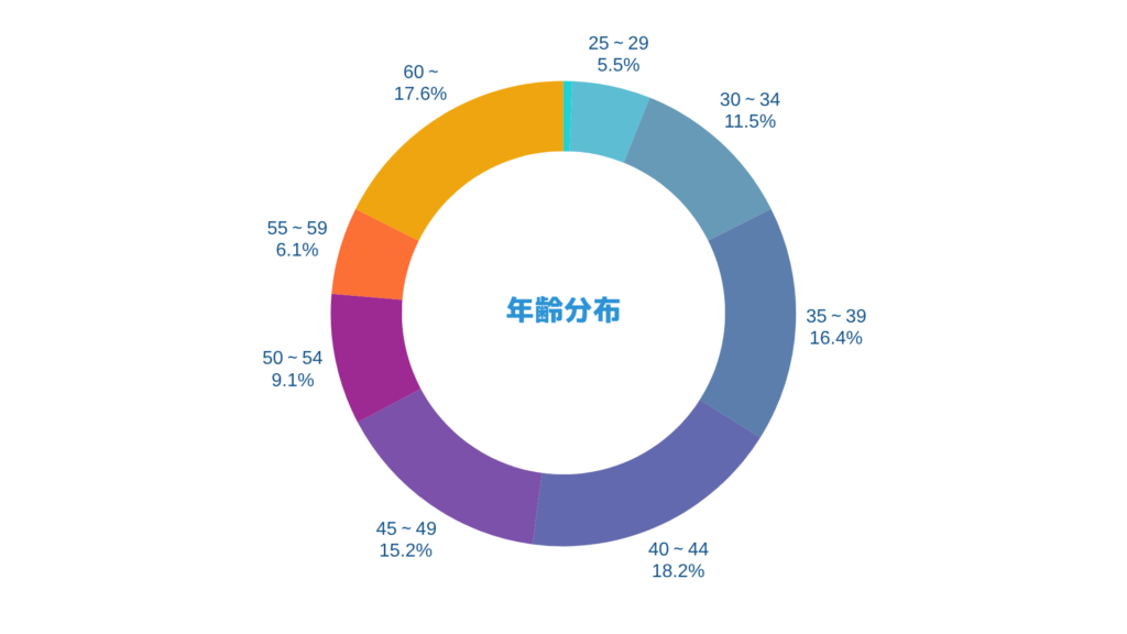 現在、幅広い年齢層の方にご登録いただくようになっており、30代・40代が6割超と引き続きメインでありながら、60歳以上の経験豊富なシニア層も登録が増えてきました。性別は依然として男性比率高めで、もうちょっと女性BizDev人材のご登録も増えるといいなあと思っています。