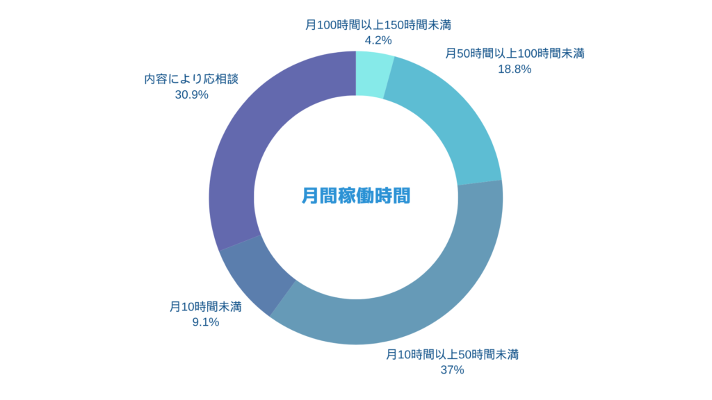 月間稼働時間については、フリーランス・個人事業主の方が増えてことも影響してか、「月50時間以上100時間未満」「月100時間以上150時間未満」とハーフコミット・フルコミットに近い稼働を希望する方も増えてきています。