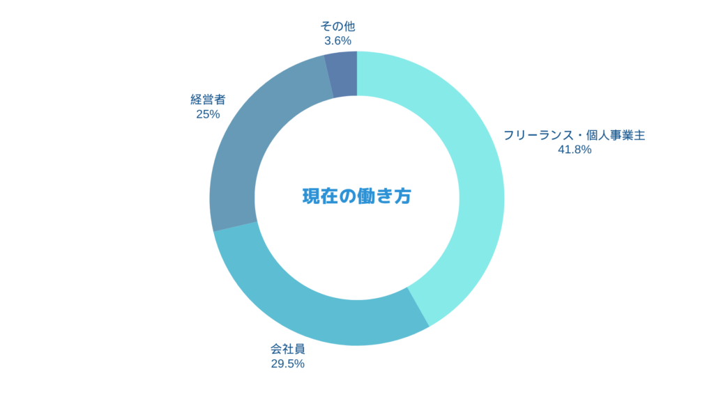 登録者数の増加により、「現在の働き方」にも変化が見られます。「フリーランス・個人事業主」が4割を超え、以前に比べその比率が上がってきています。