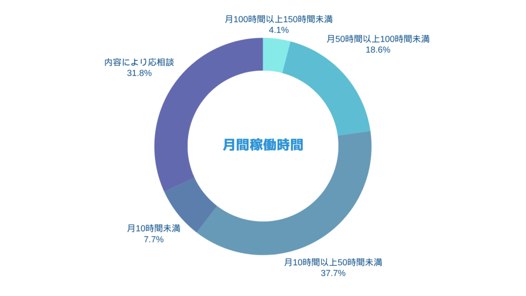 月間稼働時間は、先月とほぼ同じ比率ですが、トレンドとしては、「月50時間以上100時間未満」「月100時間以上150時間未満」の方々も増えており、フルコミット・ハーフコミットに近い稼働ができる方も徐々に増えている状況です。